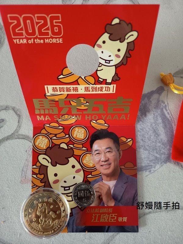 和江啟臣副院長馬兄五吉(馬上有錢的諧音梗)的招財錢母。