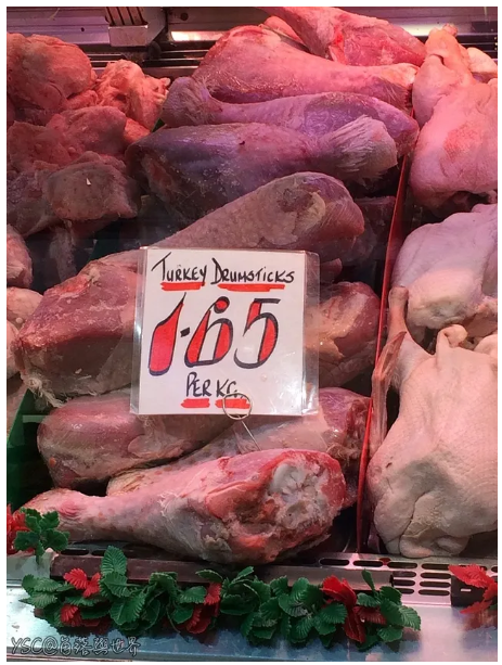 一公斤 1.65 英鎊的火雞腿在櫥窗裡面親切友好的跟我招手,