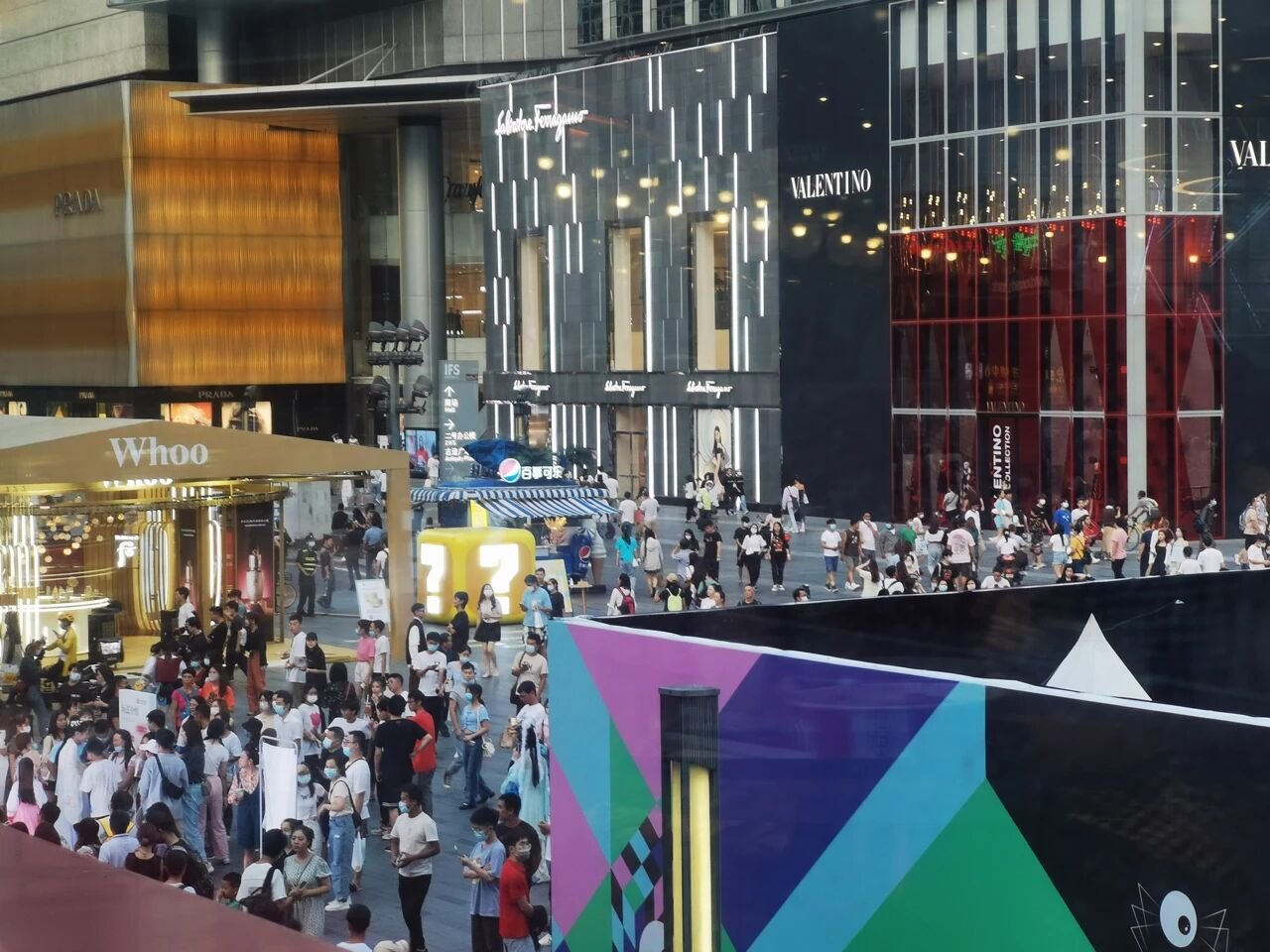 相比西寧每天排滿的展映,成都驚喜影展顯得力不從心,在影展前兩天除了白天我們進不去的劇作實驗室以外,也就只剩下了露天放映,這個在西寧延續下來的露天放映被放在了成都最繁華的地段——春熙路。缺少了在影院的體驗 ,整個影展的壓力都來到了露天放映這裡。