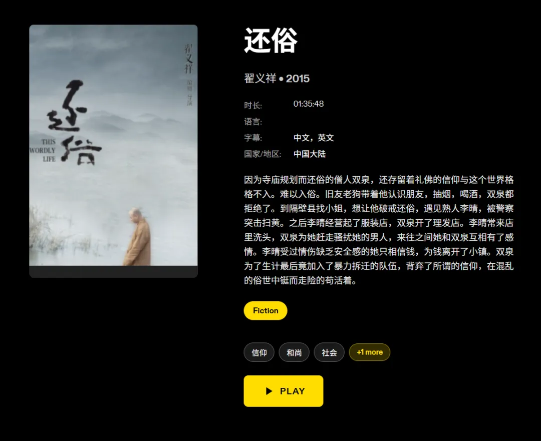 此外,翟義祥導演的前作《還俗》可於 CathayPlay 線上觀看。