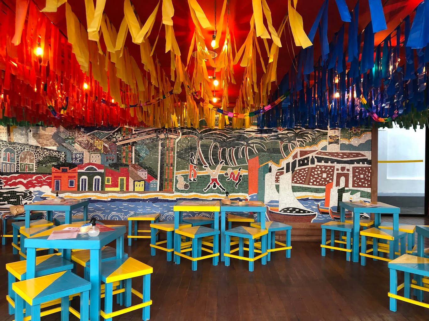 講解員雖然只說葡語,當他介紹巴伊亞特色樂器,教我們練習最基本的巴伊亞敲擊節奏的時候,一切皆可會意。他拍打出一段節奏讓每個人模仿,我向來對自己的身體協調性毫無信心,偶爾擁舞也總怕踩到對方的腳,因此笑稱:Não tenho ritmo. 我沒有節奏感。 然後試著拍打了一下。 他鼓勵道:Tem! 有嘛!