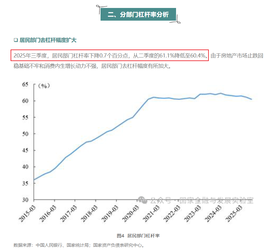 趋势正在逆转:2025年三季度居民部门杠杆率下降0.7个百分点,从二季度的61.1%降低至60.4%。说明越来越多的人意识到,在不确定性增大的时代,减少负债、增加现金,才是真正的安全感来源。