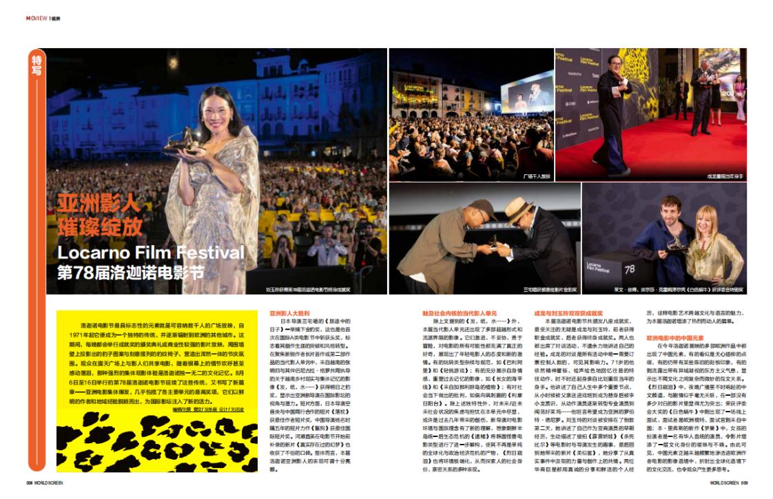 洛迦諾電影節最具標誌性的元素就是可容納數千人的廣場放映, 自1971年起它便成為一個獨特的傳統,並逐漸輻射到歐洲的其他城市。這期間,每晚都會舉行成就獎的頒獎典禮或商業性較強的影片放映,周圍牆壁上投影出的豹子圖案與刻意擺列的豹紋椅子,營造出渾然一體的節慶氛圍。觀眾在露天廣場上與影人們共享電影,隨著銀幕上的情節歡呼甚至感動落淚,那種強烈的集體觀影體驗是洛迦諾獨一無二的文化記憶。8月6日至16日舉行的第78屆洛迦諾電影節延續了這些傳統, 又書寫了新篇章——亞洲電影集體爆發,幾乎包攬了各主要單元的最高獎項,它們以鮮明的作者和地域經驗脫穎而出,為國際影壇注入了新的活力。