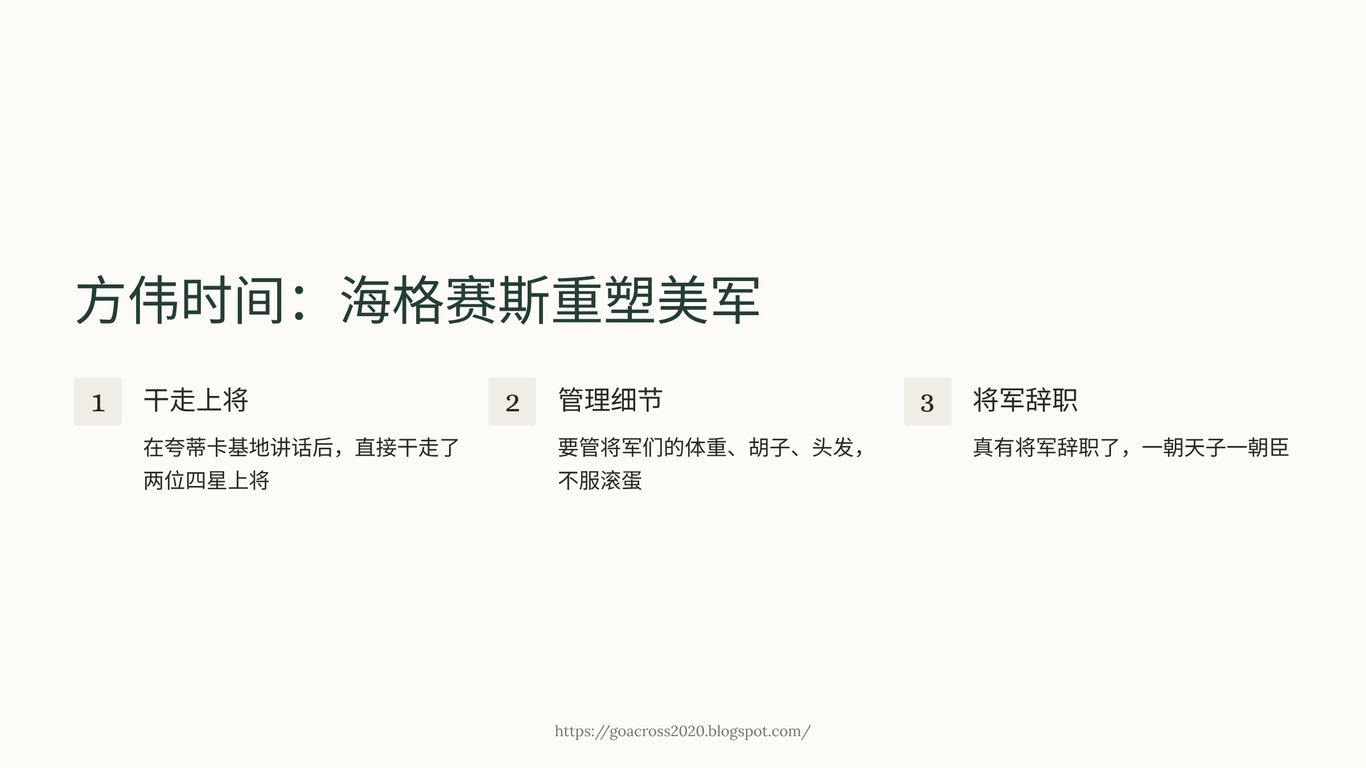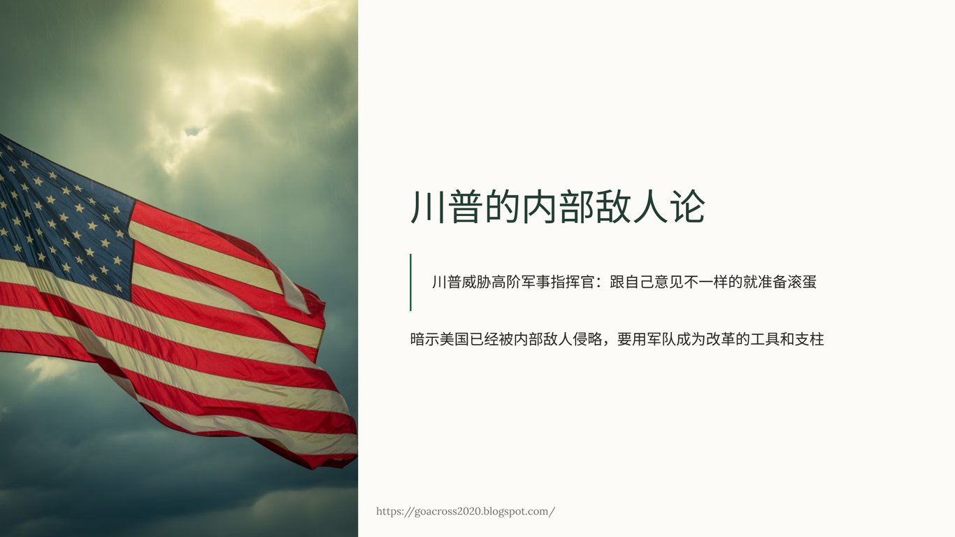 关注美军人事与政局,认为特朗普可能利用军队进行“对内改革”,强调美国政军互动的未来影响。