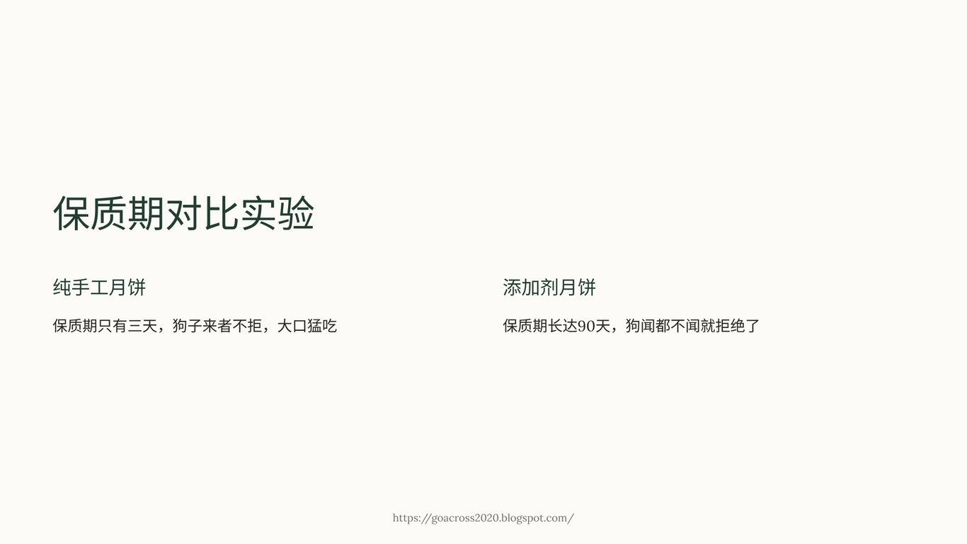以“狗不吃月饼”的段子化实验讽刺食品安全问题,情绪化表达多于科学依据。