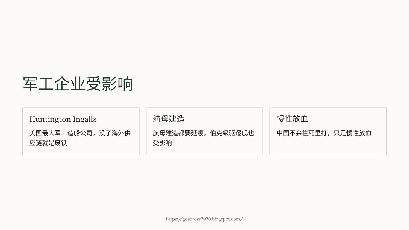 强调中国工业体量与出口管制的战略性作用,提出“慢性放血”策略来对抗制裁。