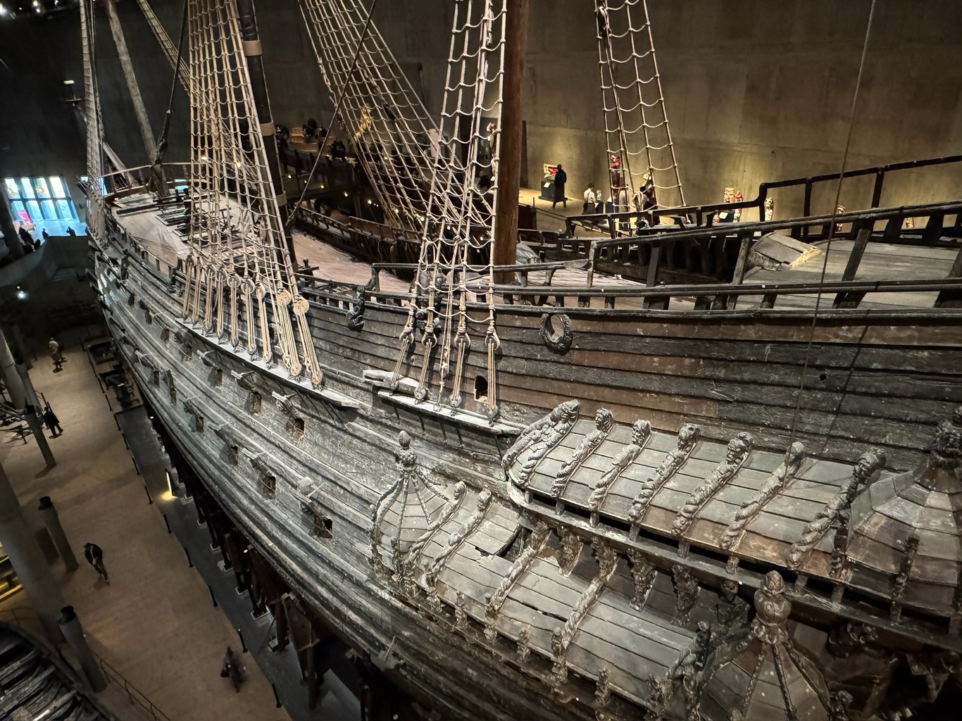 斯德哥尔摩最著名的博物馆是瓦萨博物馆。里面保存了一艘十七世纪的木质战舰。十七世纪是瑞典的大国时代。当时的国王打造了这艘战舰意图参与当时的欧洲竞争。只不过因为工程上比较激进的原因,船造好后开出去一公里就沉了。当时的人不会知道,在三百年后,他们的国际笑话会成为瑞典现在的文化地标。博物馆中展示的就是这个船和随船沉没的各种东西。比较遗憾的是,对于当时瑞典的历史和社会形态介绍甚少。有一个点比较让我疑惑,馆中展示了大量打捞这艘船时的种种经历,并把它形容成仿佛登月一样的工程奇迹。作为一个工程师来讲,我见过的或听过的工程奇迹实在比较多。但是对与瑞典人来说,或许是这个平静的小国实在没什么惊天动地的大事可干吧。