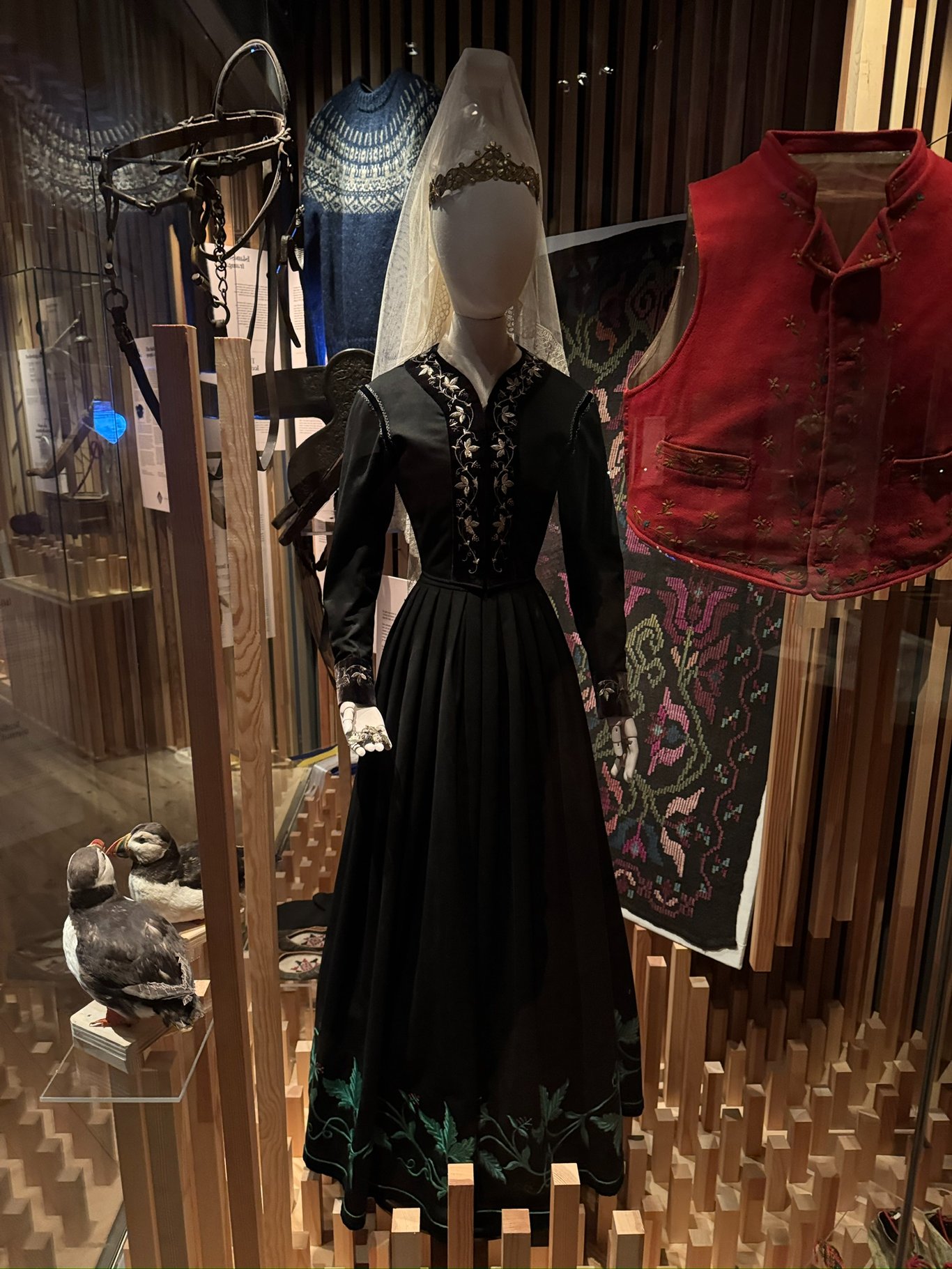 当然北方民俗博物馆中也包含了北欧众多民族的文化历史。比如图中的是冰岛女性的传统民族服饰Skautbúningur。说是传统,其实这是19世纪冰岛民族主义运动创造的产物。旨在将他们的身份与当时的丹麦统治者区分开来。生动体现了欧洲民族无限可分的特点。除了这个东西,馆中的主要展品是北欧各个时期的日常饮食和日用品。我只是走马观花地看了一下,没有太多留意。wa
