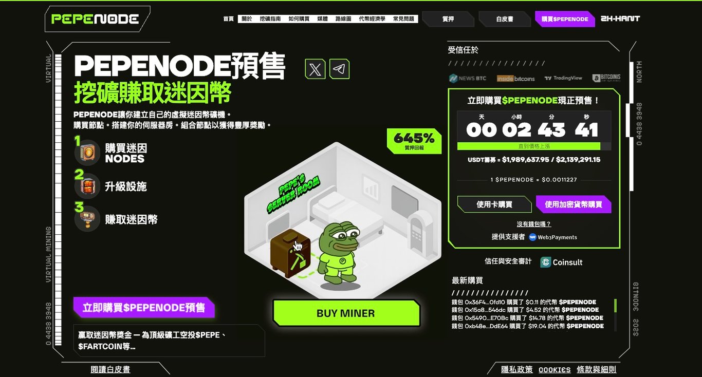 PepeNode恰在此時崛起,以迷因文化作為流量入口,以挖礦機製作為經濟基底,形成自我循環的收益生態。這使其在市場盤整中仍能維持社群活躍與資金流入,並具備長期成長潛力。