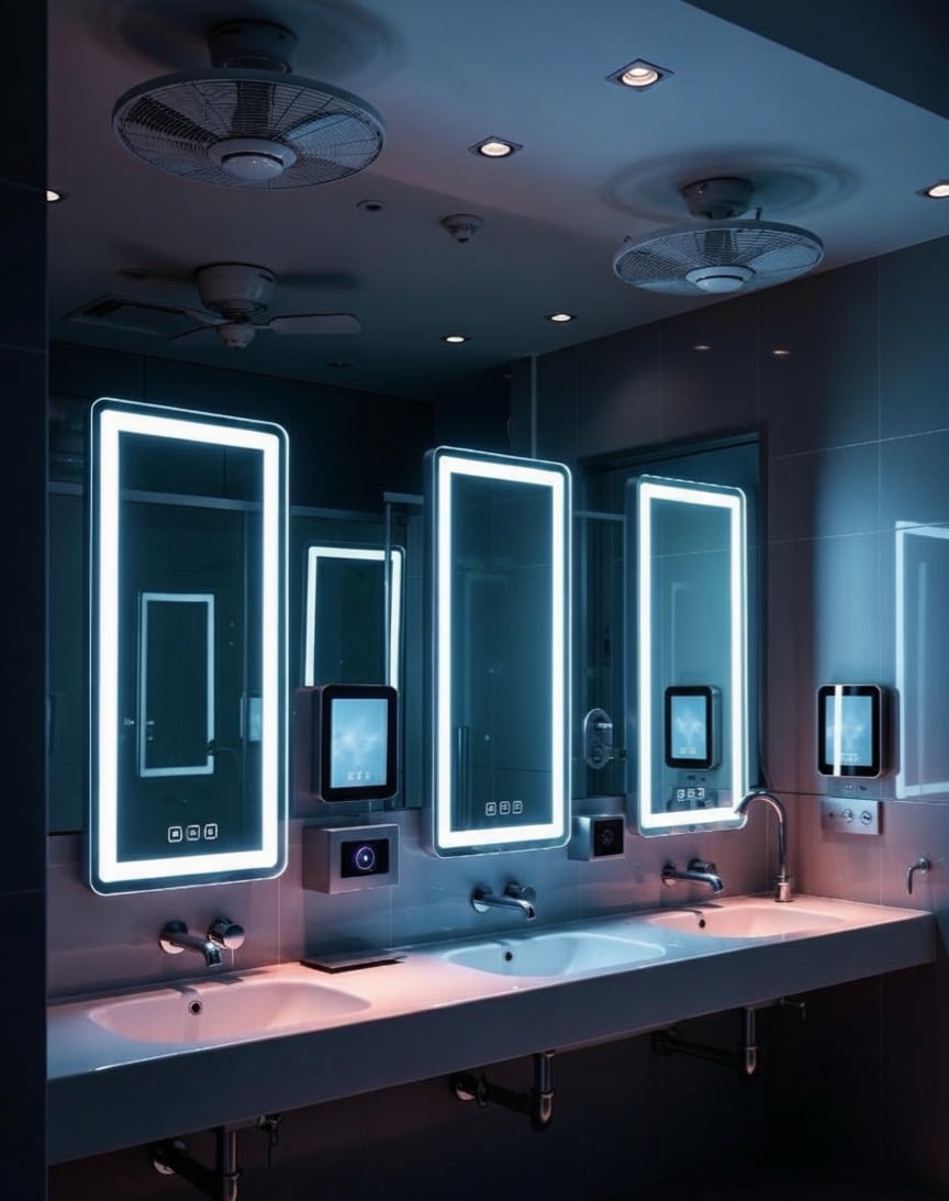台北信義區「天鏡百貨」的閉店音樂準時響起,這棟2023年才開幕的智慧型商場,以「全館AR互動體驗」為最大賣點。每間廁所都配備了最先進的智慧科技系統,不只能顯示天氣、新聞,甚至會根據你的表情推薦商品。