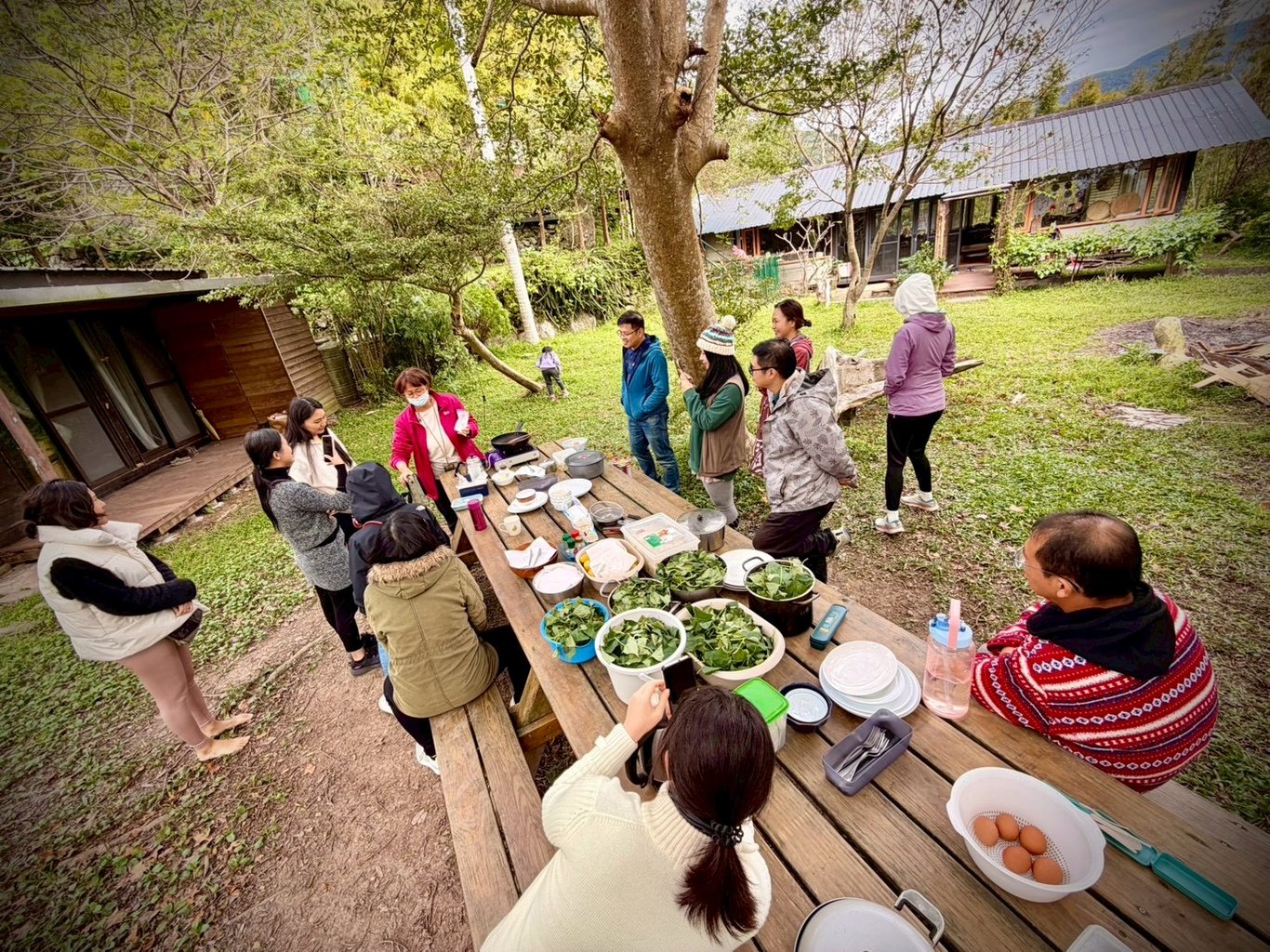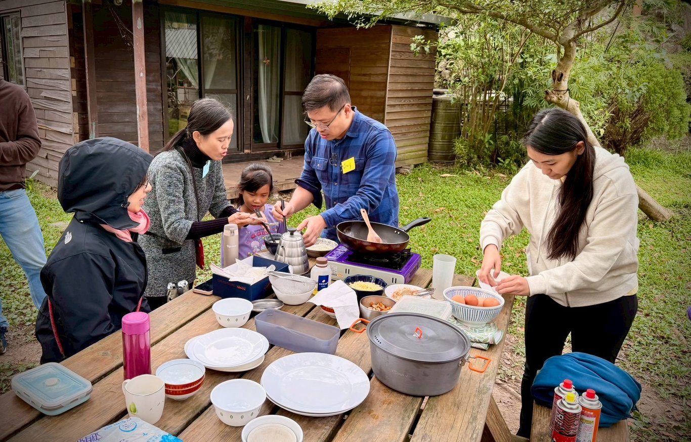 撿完自己的雞蛋後就回到(野)餐桌前,Kathy自然不會輕易放過我們(欸),除了撿雞蛋外,當天中午的午餐—碧螺春蛋餅,也是要我們動手自己做出來的啦!
