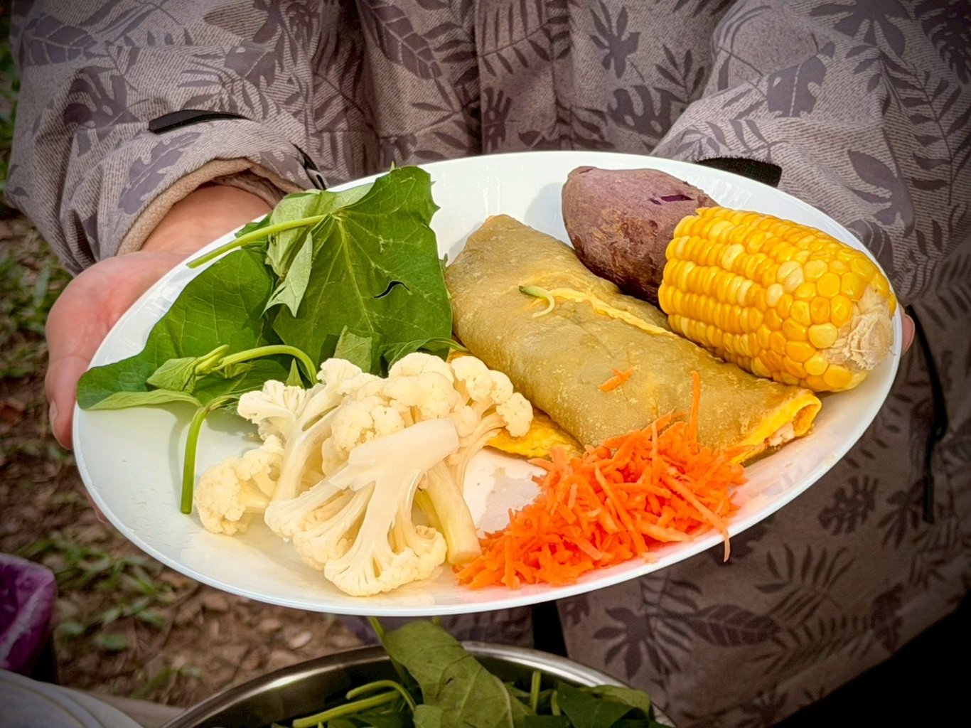 今天繼續來寫在魔法村落的一天,早上的正念手作活動結束後,本想著可以來好好吃一頓健康的午餐,沒想到映入眼簾的是一盆一盆的生地瓜葉,還有不確定熟了沒有的一些蔬菜。