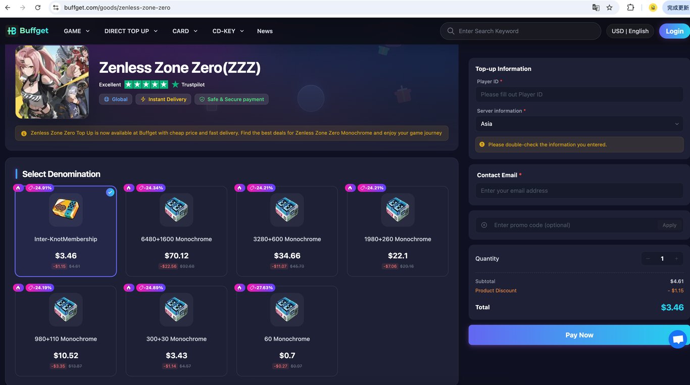 Buffget은 Zenless Zone Zero 유저를 위한 최적의 플랫폼입니다.
