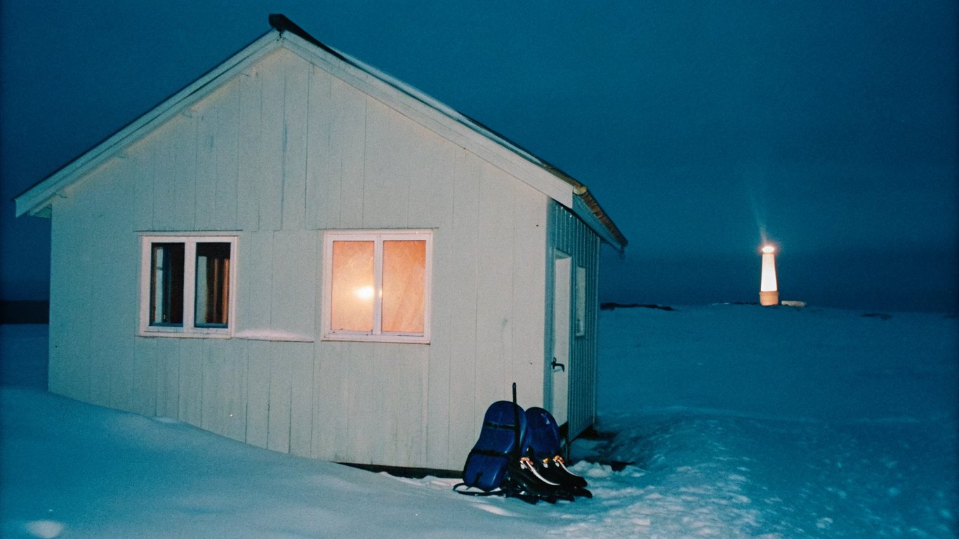 小島的冬天比任何地方都要寂靜,只有鞋子踩進積雪的聲音和遠處海浪的低鳴。街燈在風裡輕微晃動,光暈被雪霧吞沒,照不出幾公尺遠。