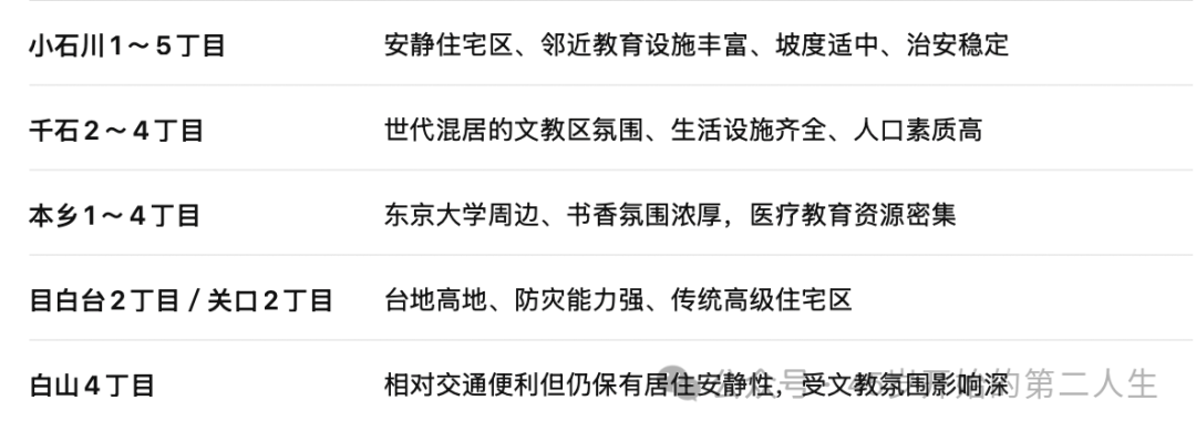 主要的高收入家庭集中在:小石川、本鄉、目白台一帶。