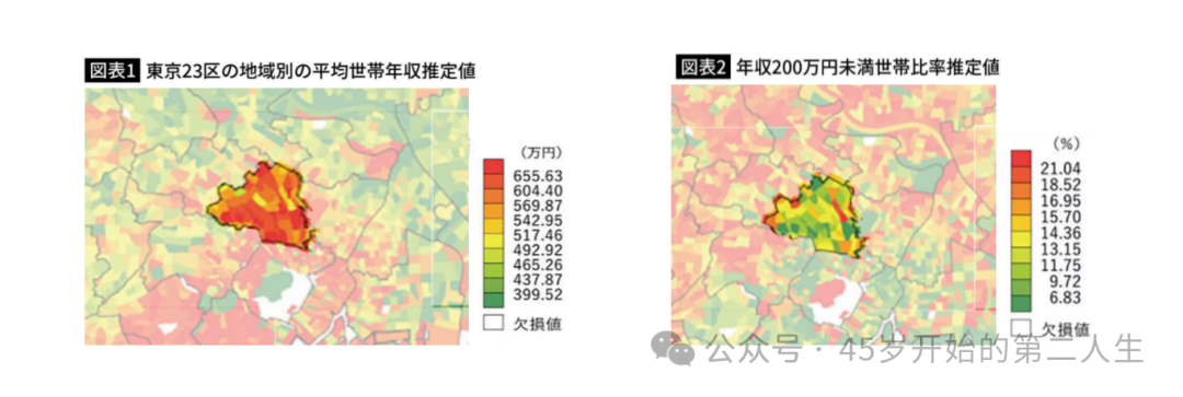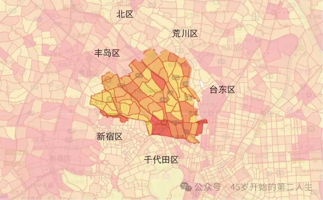 從圖中可以看出,文京區大部分地區收入處於東京中等線以上,幾乎沒有低收入人群集中的地區。