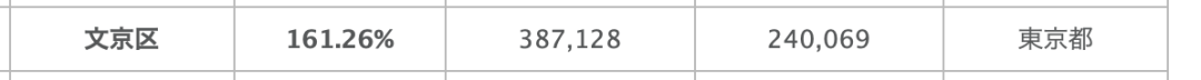 如果考慮到文京區的晝夜間人口比(2020年的國勢調查數據約1.61),以晝間人口計算的話,人均犯罪率大概還可以下降到0.25%以下。