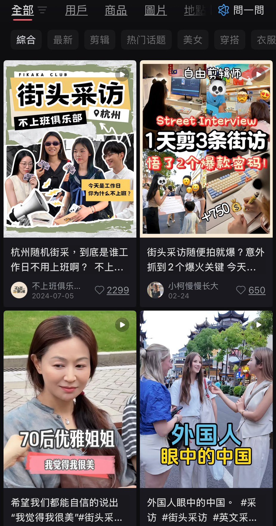 谈到这类节目流行的原因,考拉表示,相比其他自媒体内容,街访是比较容易上手的类型,找到噱头去问就好了,有台摄影机就可以上街访问,并且容易挑拨情绪,很容易在一开始就吸引到博主想要的流量。此外,从外部平台「搬运」节目的逻辑也一样,出发点都是以流量为主。