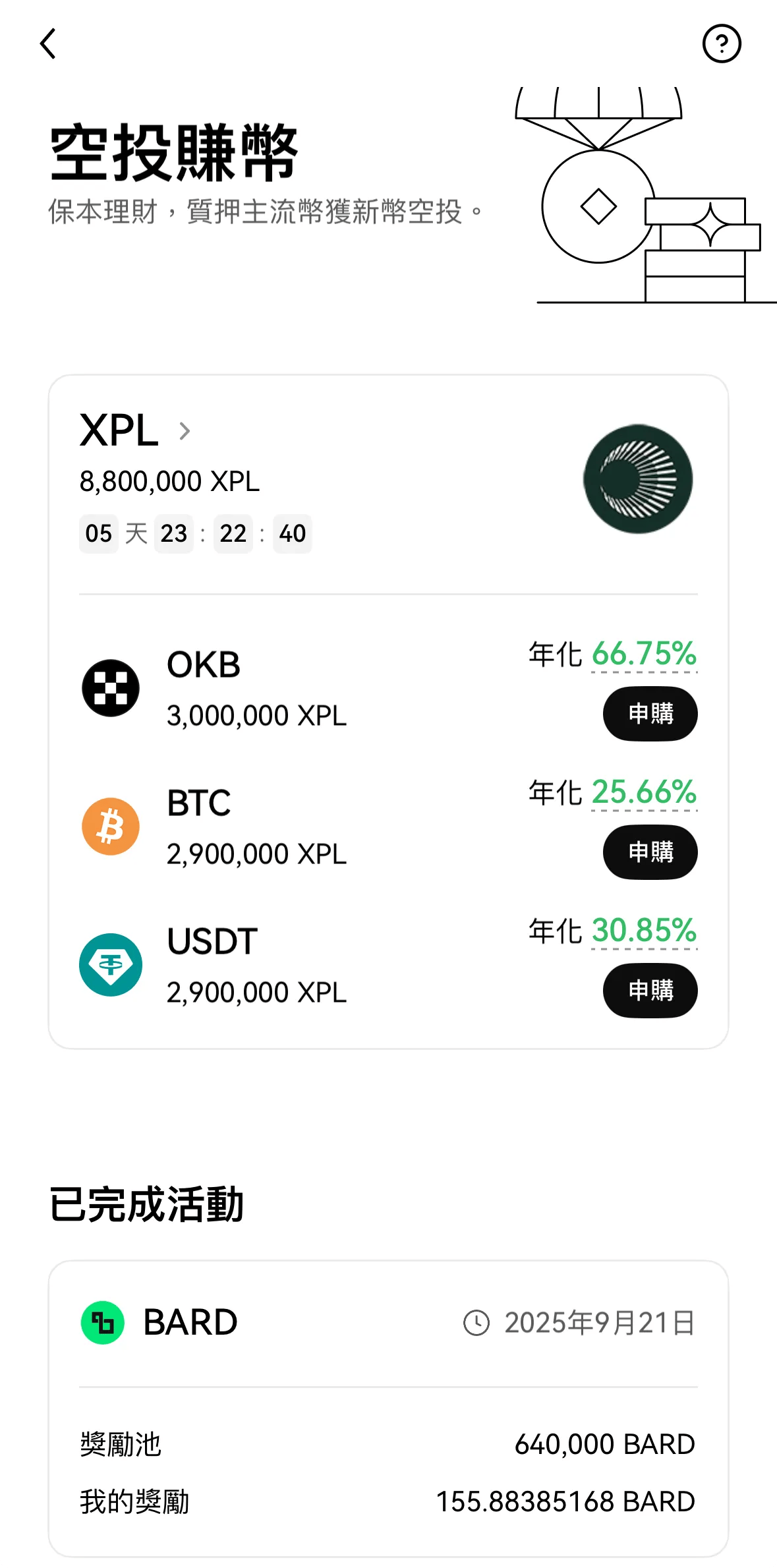 嚴格說起來,其實更貼近「抵押」(collateralize)的概念——也就是把資金先押在 OKX,在這段時間內,平台就會回饋我一些獎勵。