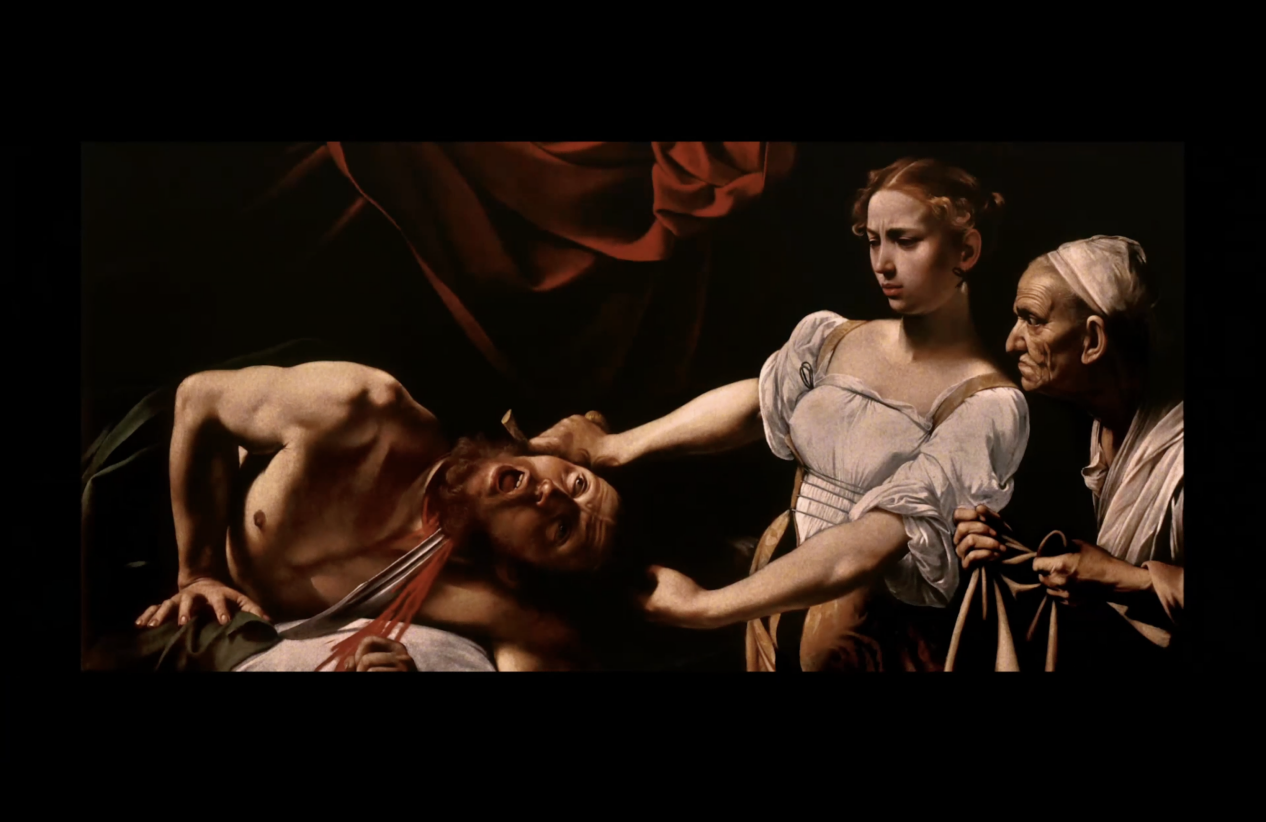 角色造型與物質質感首先強化了這種致幻般的拼貼邏輯。反派角色Serpentik(“蛇女”)的名字是對1968年的意大利電影《撒旦姬》的致敬;角色身著的黑色連體衣則源自意大利黑色漫畫(迪亞波利克);約翰D同僚“飛蛾”的服裝設計則源自1966年Paco Rabanne設計的金屬亮片裙…這些來自不同媒介與時代的符號在銀幕上被重新拼合,形成一種視覺層面的錯位與迷離,正如影片的非線性敘事一樣。卡拉瓦喬的《朱迪思斬殺赫羅弗尼斯》也出現在影片中,與刺殺場面拼湊在一起。宗教畫中的暴力與情色被重新轉化為電影的視覺符號,暗示影像中的暴力殺戮。導演將高雅藝術與通俗電影、男性英雄主義與女性暴力意象並置,使影像成為對自身歷史的考古。