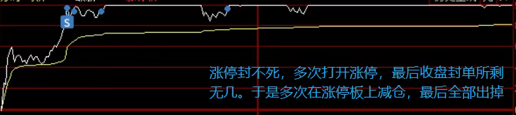 4、短期大幅反弹两三天后,遭遇上方较大卖压上不去,或者封不死涨停,多次打开,封单很少,抛单很多,或者无法向上突破,不再反弹,则减仓获利了结。