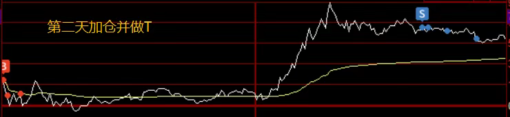 3、如果之后发现走强,可果断寻找回踩加仓。如果担心不安全,控制仓位,可以加仓后尾盘再把加仓的卖出一部分,叫做T。有的群里朋友就是因为我这一句“哪怕不放心下午可以T出去”,前两天才敢于加仓,之后收获了涨停。