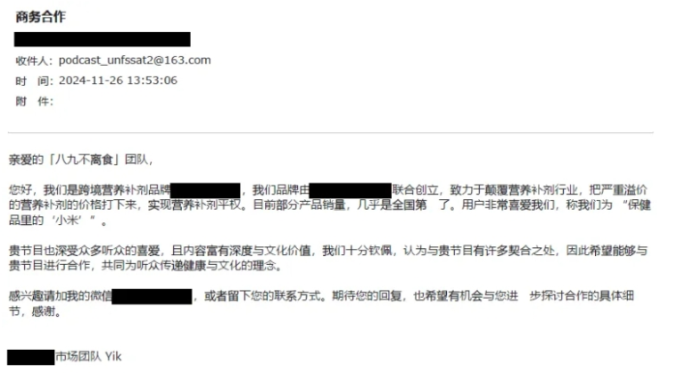 作为播客《八九不离食》的主播,我的商务邮箱里也常常收到保健品的带货邀请,尤以本土“小众”品牌居多,甚至还有冻品类食品来邀约背书。虽然被“赏识”多少有些微妙的满足感,但对我来说,接保健品推广会影响我做营养科普的独立性,加微信了解这些商品究竟是否安全可靠的沟通成本也太高。所以我选择爱惜羽毛,委婉回绝,还和朋友自嘲:明明播客节目里劝退大家买热门保健品,商家却还是觉得我能带货?