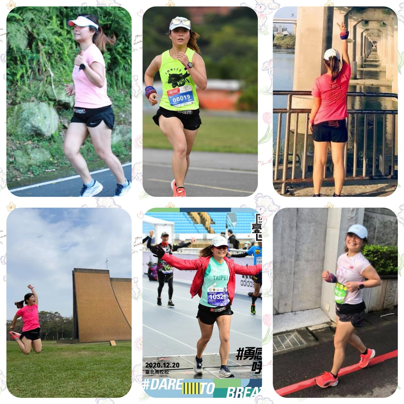 一直到在2020年間,我就真的把自己只要空閒的時間。清晨、晚上、大太陽、下雨天、寒流發威也去跑;毫無保留地給跑步這件事情,很謝謝老公給予我最大的支持。雖然那時只能用零碎時間練跑,但那已經是我用盡生命的熱情,全力灌注的事情。
