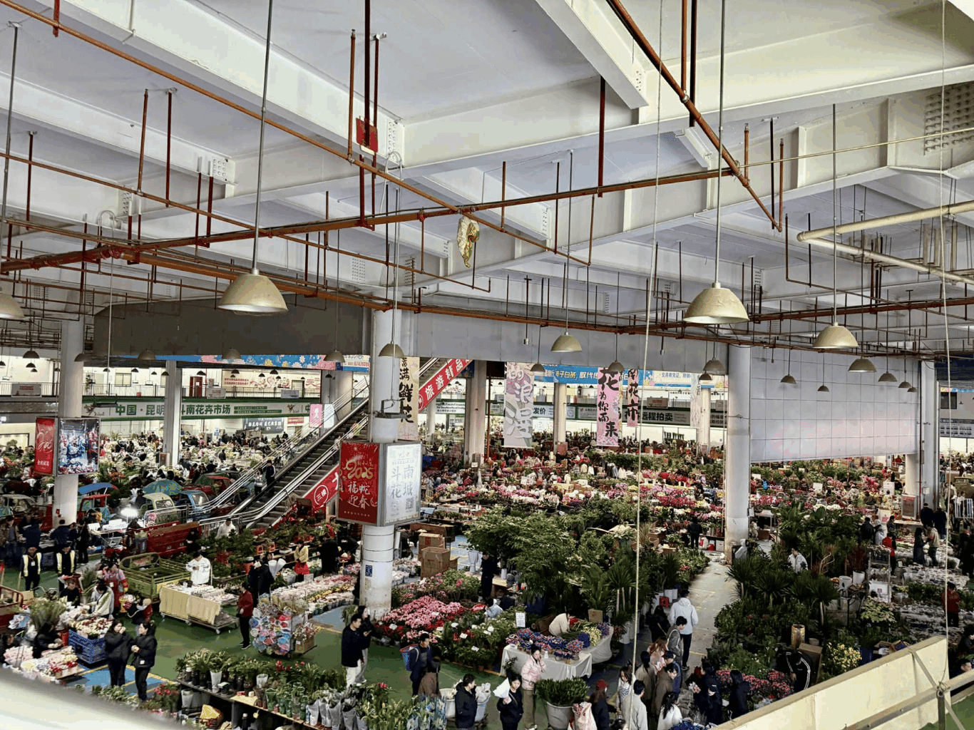 在花市繞了一圈,興許是我們抵達的時間剛好卡在人家要從日間零售換成晚市批發吧,此刻的人流並沒想像中的多,沿途即使堆滿了大量的鮮花與盆栽也依然能夠自如地遊走,不錯。