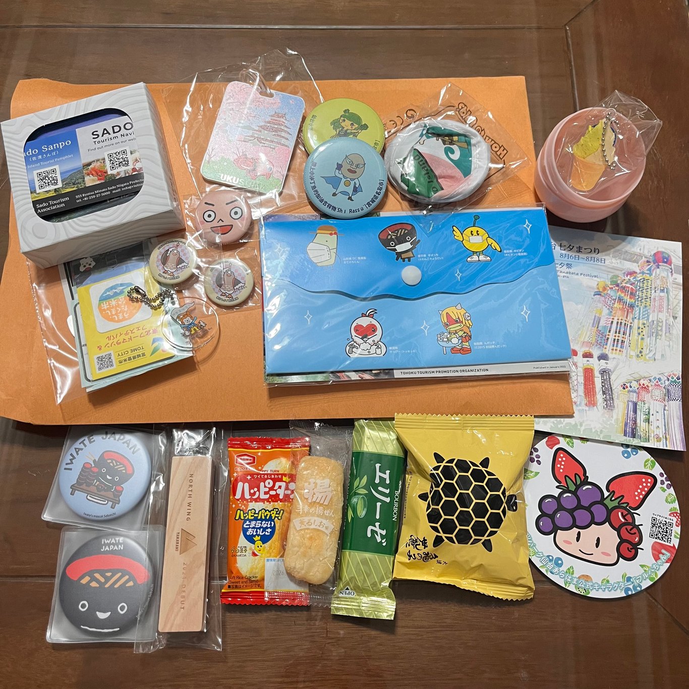 每個攤位都精心準備問卷、小活動,填一填、追臉書或 IG,就能換到精巧可愛的紀念品:徽章、鑰匙圈、行李掛牌、杯架、收納袋,甚至還有小零食。像是把整個東北的心意,都用最輕巧的方式裝進袋子裡帶回家。
