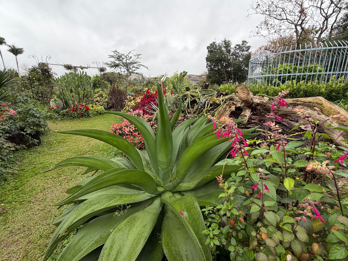 當天只看了新生北路側的各色系玫瑰園區,除了滿滿的玫瑰,這次的展區著重結合景觀園藝,適時地結合藥用植物花系,看得到金銀花、麝香木、毛地黃等。還有一小小區域展示多肉或者懶人植物如空氣鳳梨,應該有運用自然式植栽概念,滿特別的。K看到偌大的皇冠龍舌蘭時,開心得跟什麼似的。