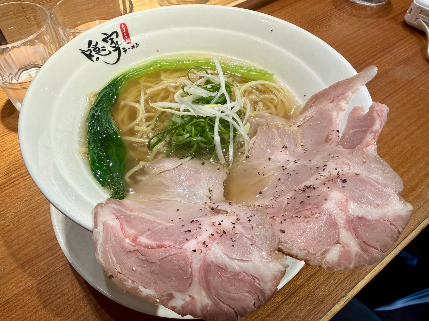 隱家比較忠於日式拉麵的濃郁湯頭,看起來比較清淡的只有黃金雞湯拉麵。本來不抱任何期望,等到我的那碗黃金雞湯拉麵加點豬叉燒送到,第一眼覺得還不壞,開吃後馬上有驚豔感。