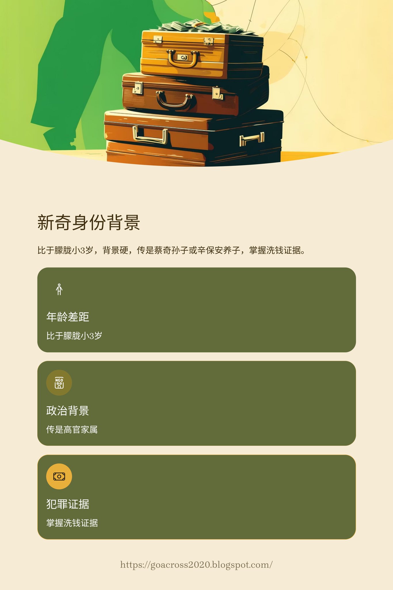 更具爆炸性的指控是,于朦胧的死是一场精心策划的谋杀。爆料称,他因拒绝娱乐圈某位“大佬”的“潜规则”而遭长期打压与控制。该“大佬”被指背景深厚,网传其名为“新奇”,年仅34岁,据称是中共中央政治局常委、中央办公厅主任蔡奇的孙子,亦有说法称其是国家电网原董事长辛保安的养子。传闻指出,于朦胧掌握了“新奇”及其团伙涉嫌洗钱的证据,并存放在一个U盘中,这成为他招来杀身之祸的直接原因。