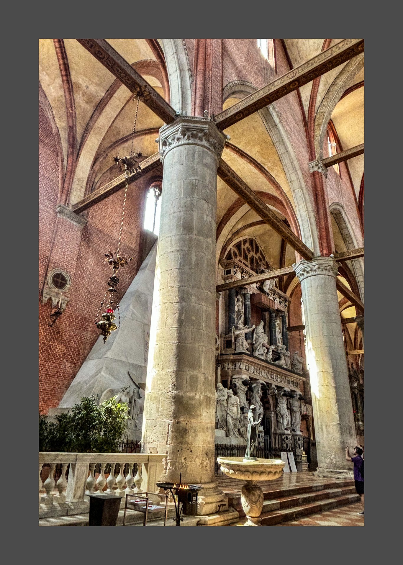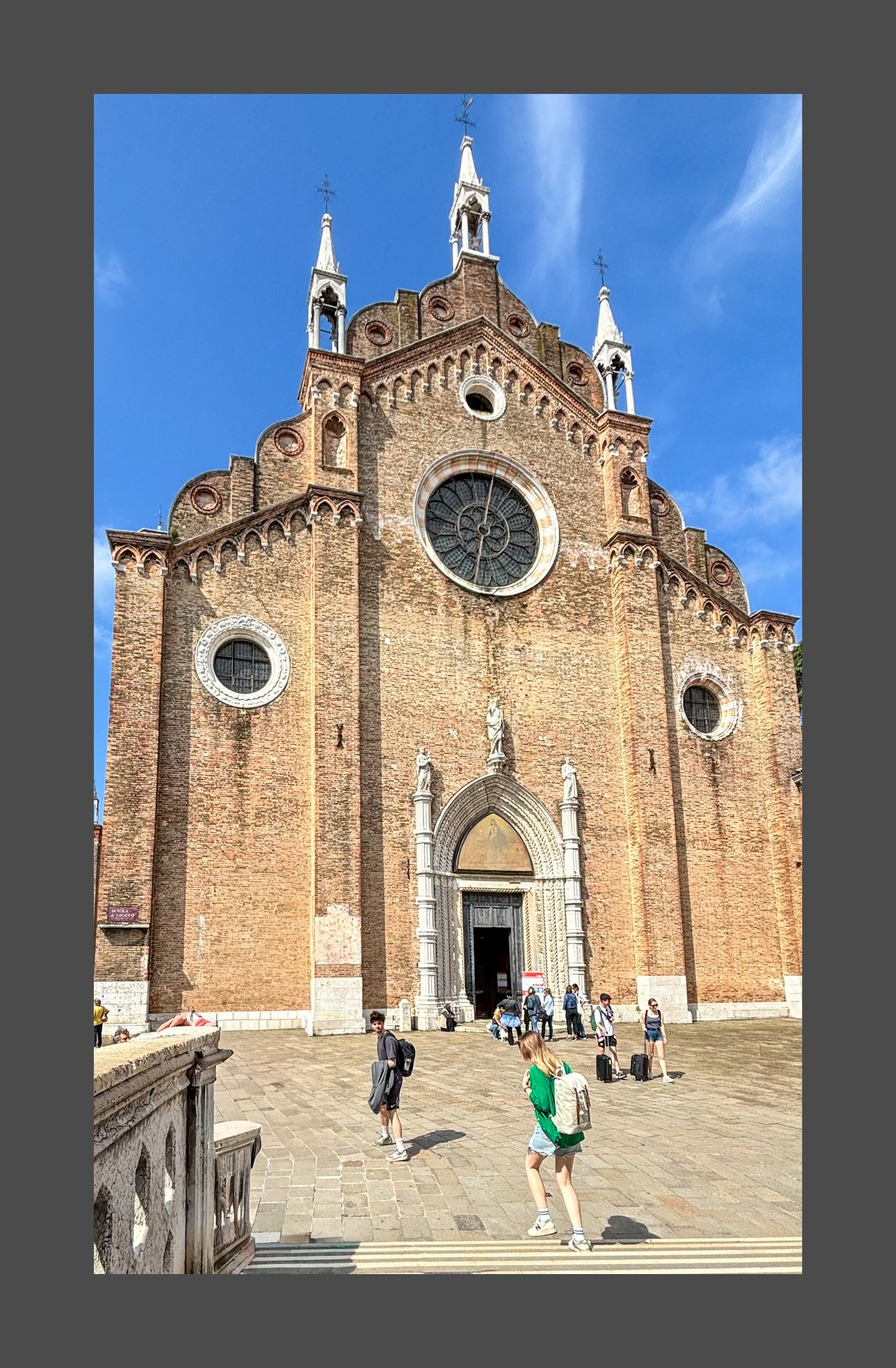 从圣匝加利亚教堂出来,再次走过里亚尔托桥,踏入圣保罗区,圣方济各荣耀圣母教堂教的哥特式尖塔冲进视线。