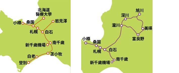 登別區域鐵路周遊券路線: 富良野區域鐵路周遊券路線: