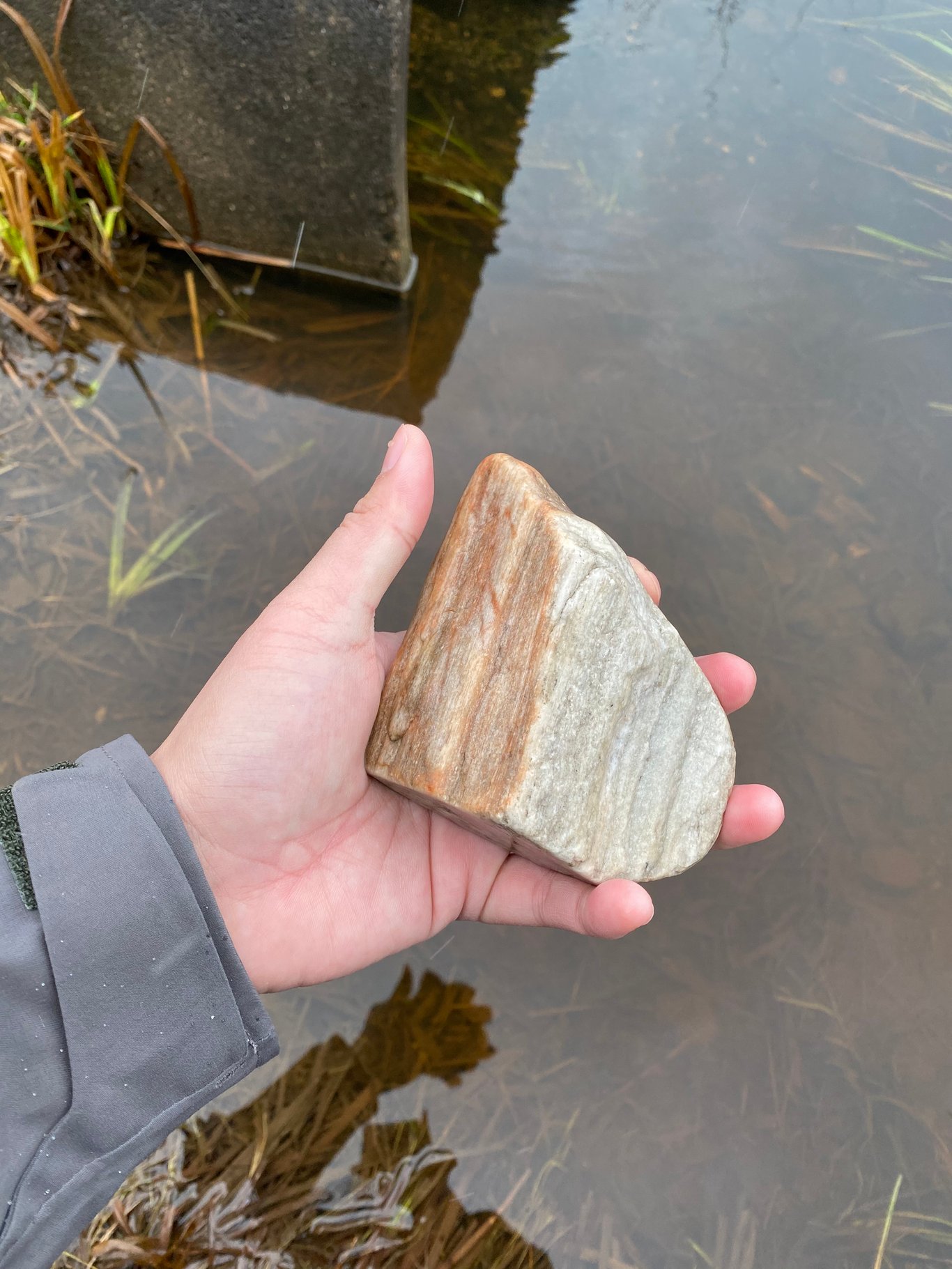 丟掉的時候有點難過但是沒有猶豫,我從世界各地的海撿了石頭,我把它們帶來丹麥,最後我把它們留在丹麥家的土地上,我原本一顆都不想帶走,不知道為什麼,我就是想要留下它們,它們可能無法理解為什麼我這麼做?有一天下午,我做了一個夢,很清晰的夢,有一個長髮穿著長裙的女人把我的大石頭撿走了,我醒來了,走到陽台看著那顆大石頭,那是在黑山的海,跟先生鬥嘴叫他撿一顆石頭送我,我一眼就知道他想幹嘛,他撿了那一顆約一公斤的大石頭,我們相視而笑,旁邊的夫妻也哈哈大笑,最後我把大石頭丟進大黑箱子,我決定帶走,我的大石頭是不是想要跟我一起回台灣冒險?才會安排女人入夢盜走。