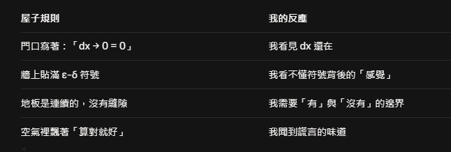 想像微積分是一間用「極限語言」蓋成的屋子: