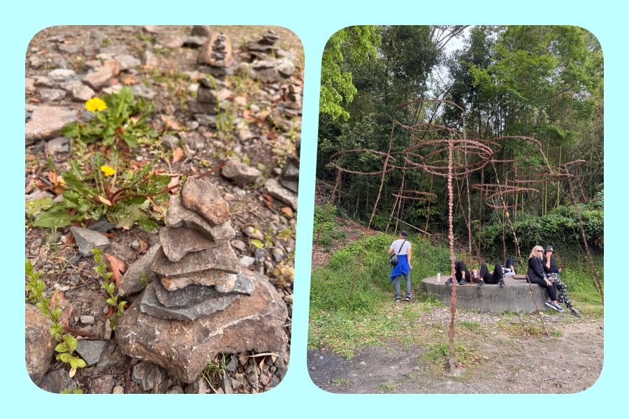 饭后散步继续去寻找岛上的艺术品。清水灵泉其实已经是个废弃的长满了青苔的地方了。但不难看出这里以前是多么有生活气息。而它的旁边便是一个废弃的神社,所有人都往上爬,以为《空之粒子》在上面。谁曾想到其实这个艺术品在神社的另一边。由于太过融入环境,大家都找不到……