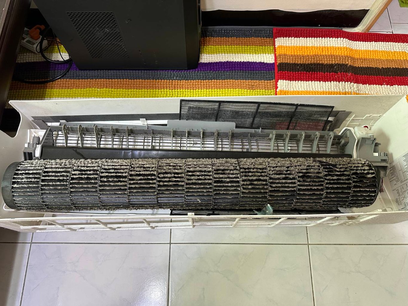 分離式內機零件、面板、濾網、風鼓和水盤清洗前~