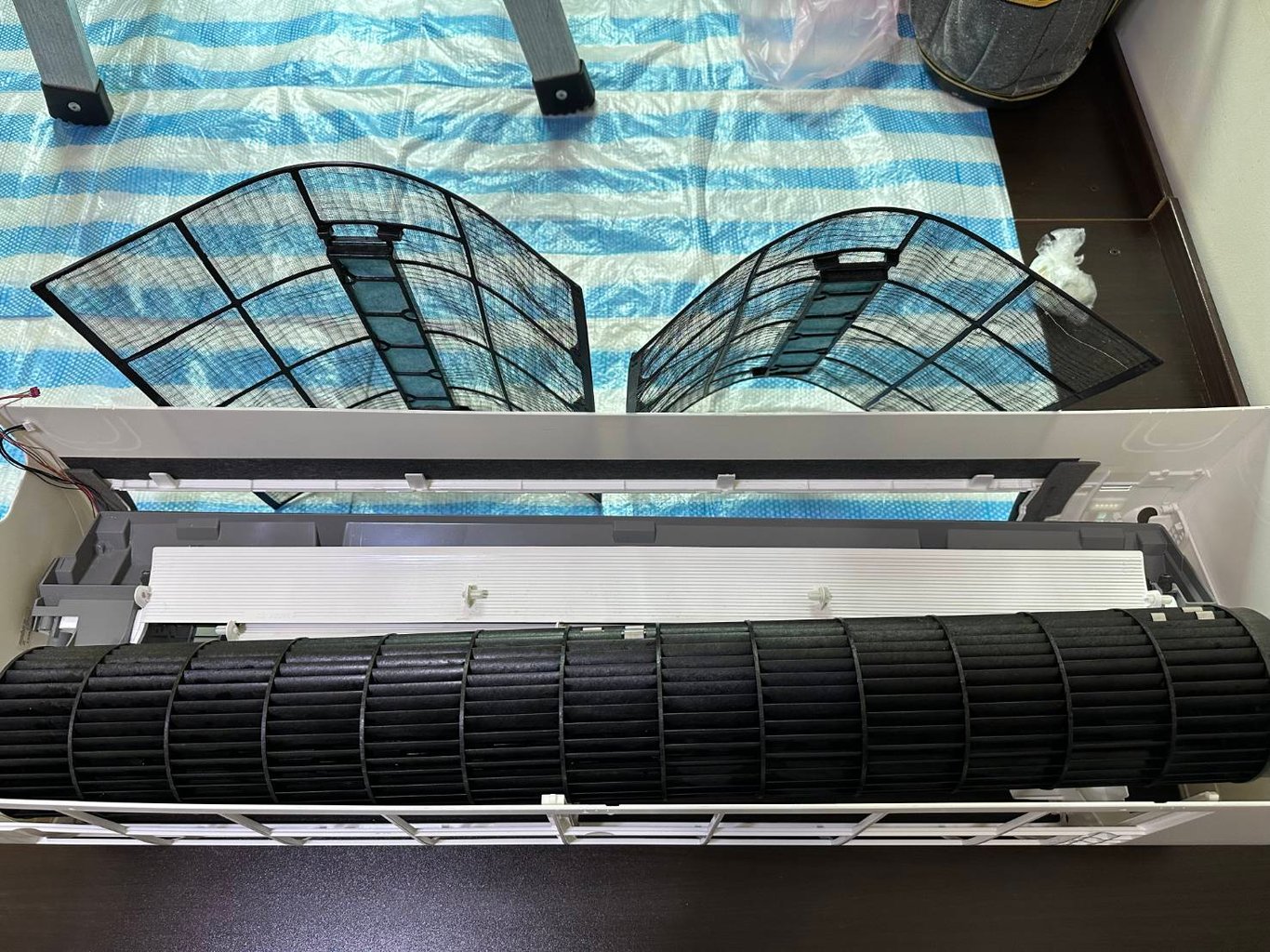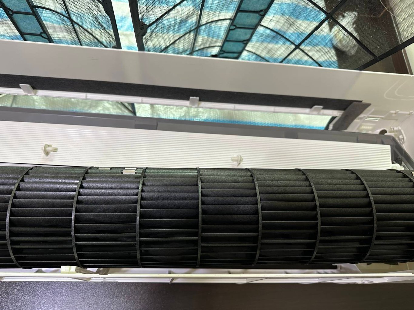 分離式冷氣內機零件、面板、濾網、風鼓和水盤清洗後~