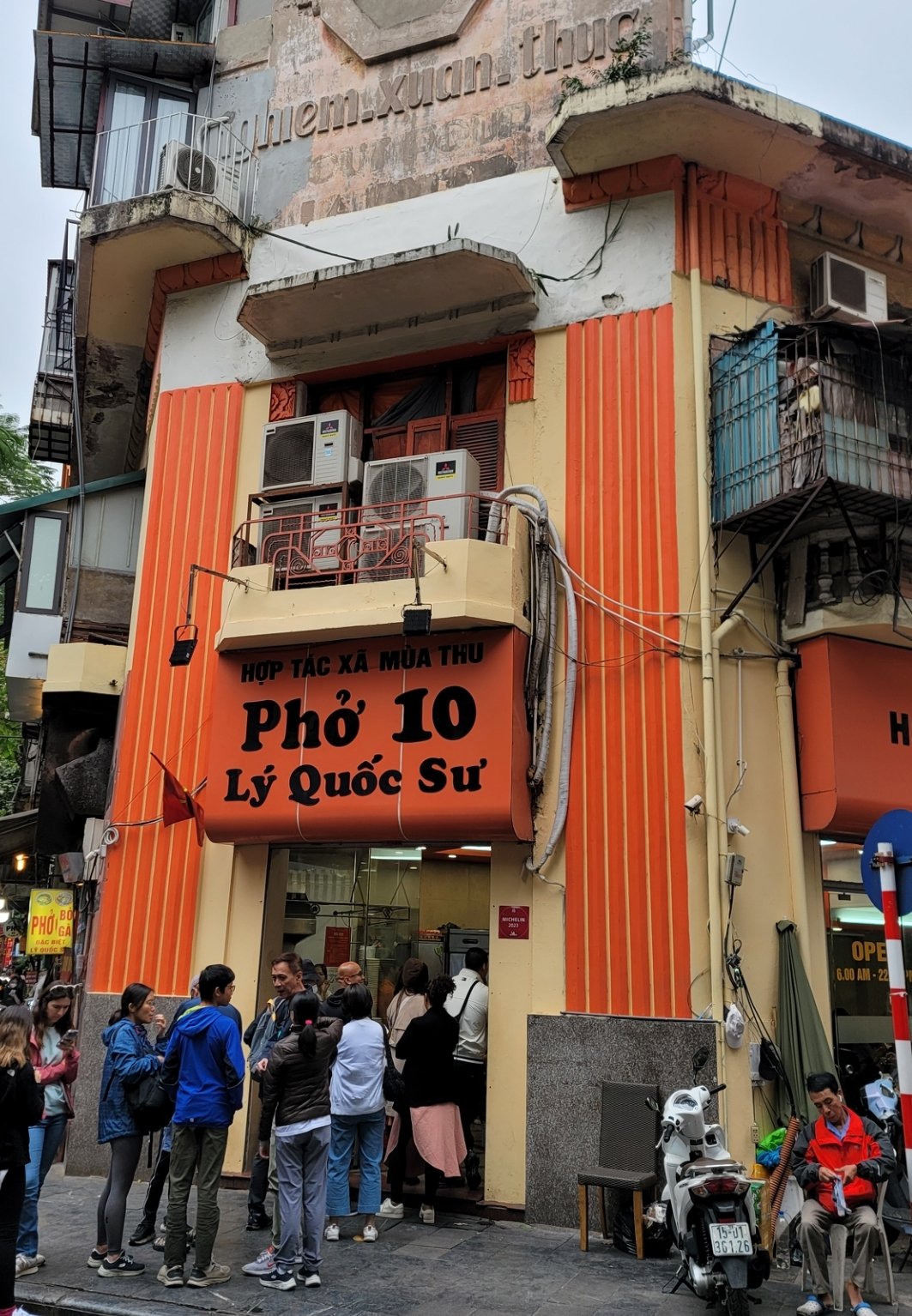 河內 Phở 10 Lý Quốc Sư 牆上有紅色米其林認證標示