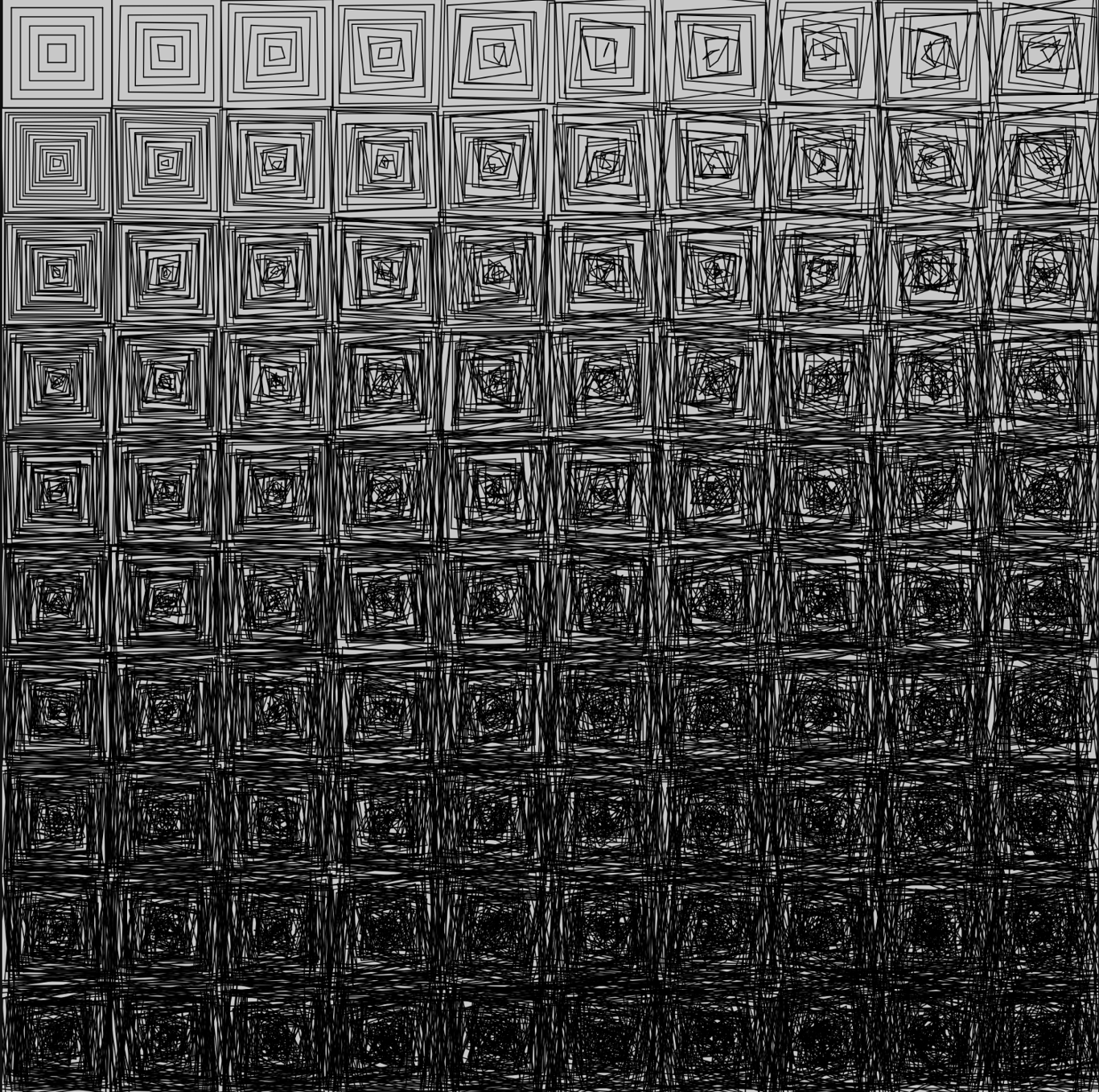 今天也是一直寫程式,再用for迴圈和各種positionX Y Width Height來組合成各式各樣的方格和線條,下面的圖都是我用不同參數來測試的,蠻好玩