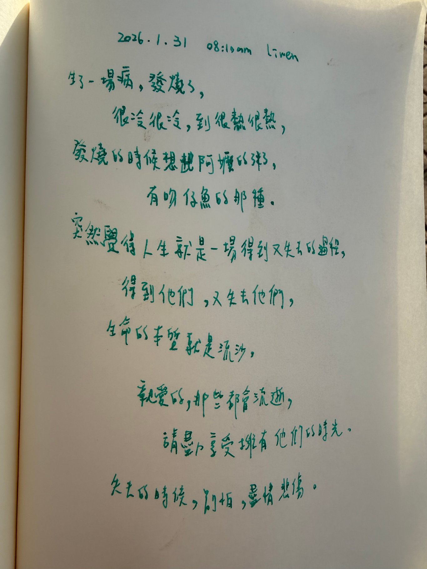 生命的本質就是流沙,不論多麼珍貴不論多麼美好,走到最後,終將一人,口袋裝不下,帶不走,一個人,風塵僕僕走完全程。