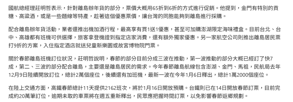 然後我才能反推資訊回去看一開始的新聞..,這才理解為什麼一開始那位記者要用國航..,他應該是想說兩家國內航空業者都有推出優惠,華信是機票優惠、機加酒行程與購物打折。
