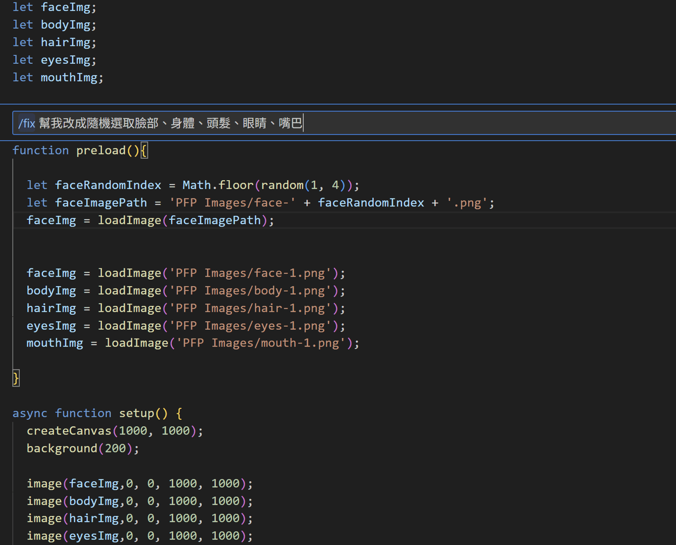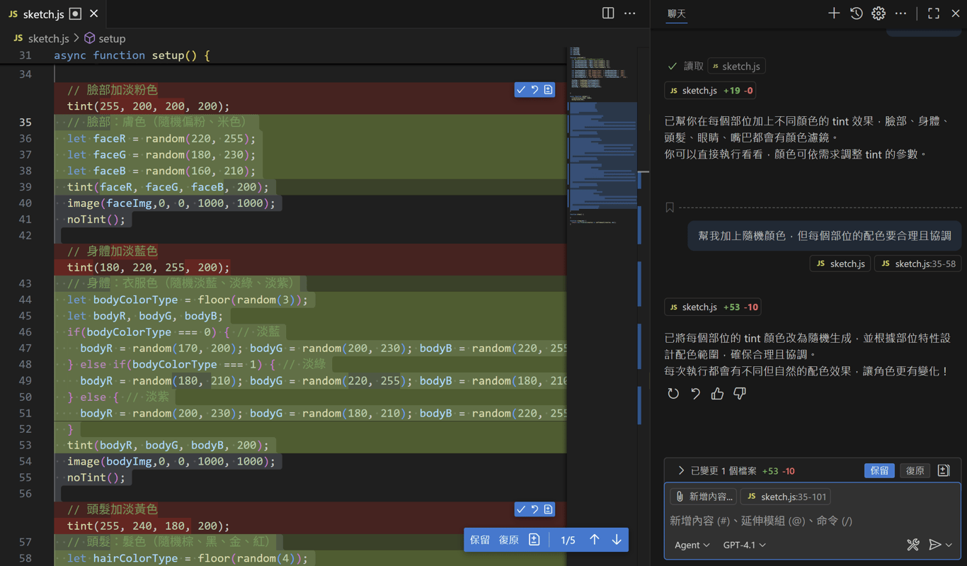 STEP 2 加上顏色 (每張圖的顏色是隨機的,但有設定配色要符合常理,例如:臉要是膚色)