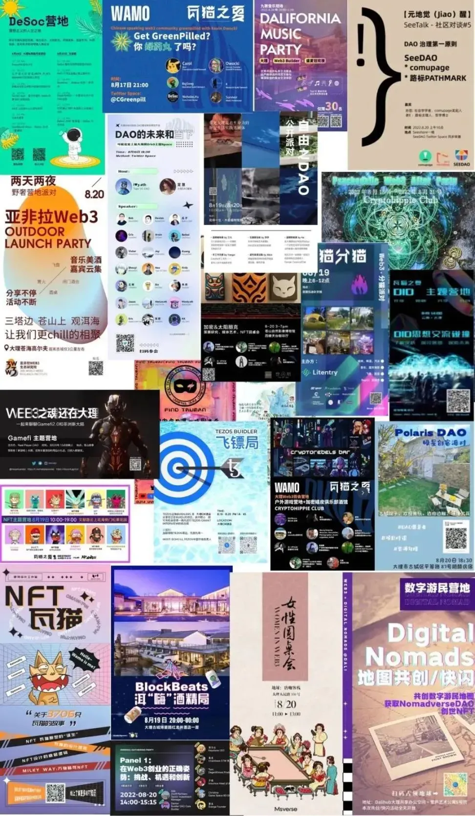 2022 年 8 月,一群来自 Web3 与社区实践领域的行动者,秉持着“正外部性、开放、共益、开源”的原则,怀揣着对技术的热忱、对 DAO 治理与自组织精神的探索、对公共物品的长期关切,以及对未来社会形态的想象,在大理发起了 「瓦猫之夏|Dali Web3 Summer」。