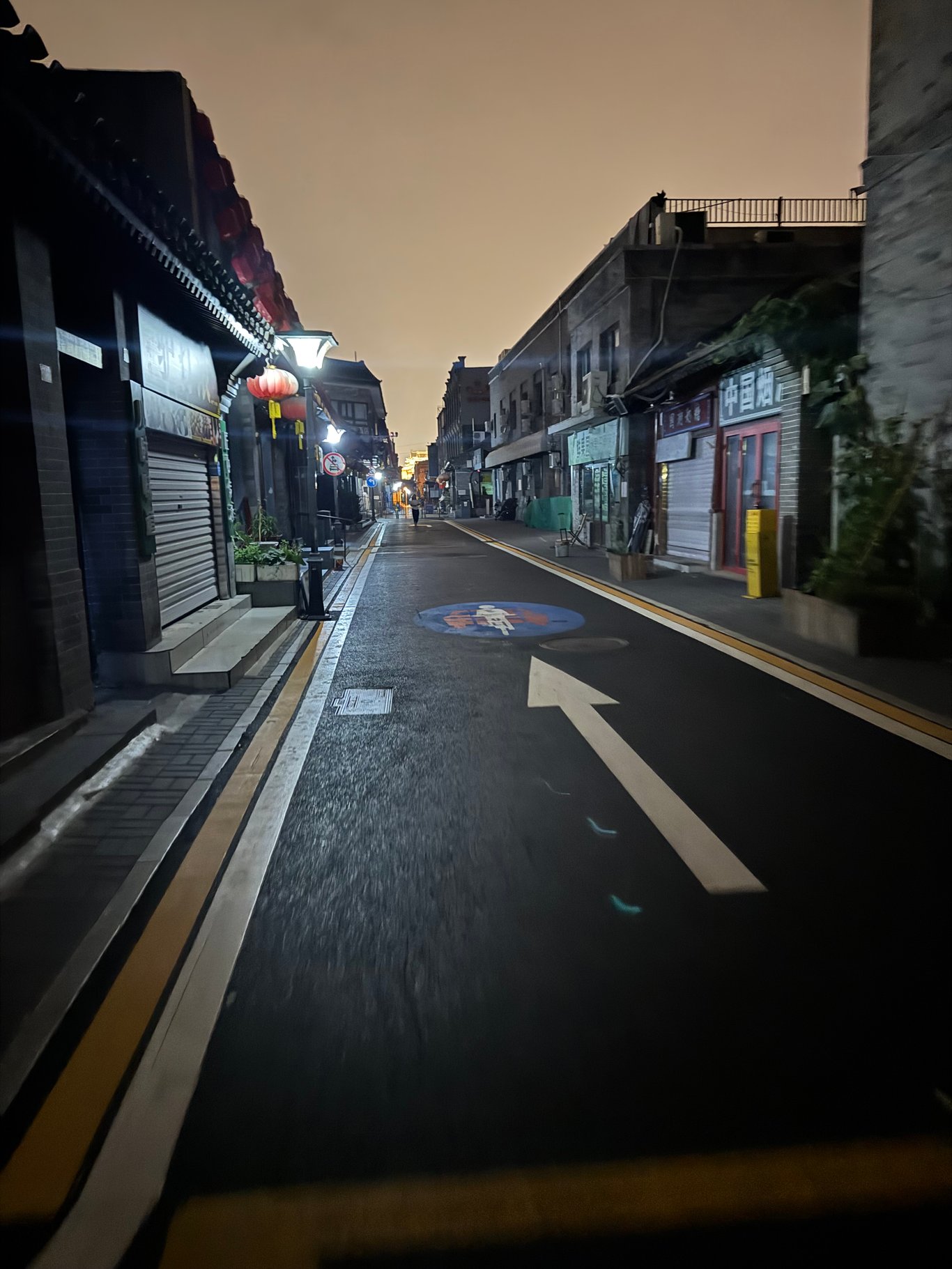 可能我這小白旅客的樣子打動了他們,總算是讓我進去了⋯這條路我都不熟悉了,只剩下路燈的胡同⋯ 我差點連我旅店的門都找不到⋯門半掩著,只剩下櫃檯內的燈微弱的照著⋯
