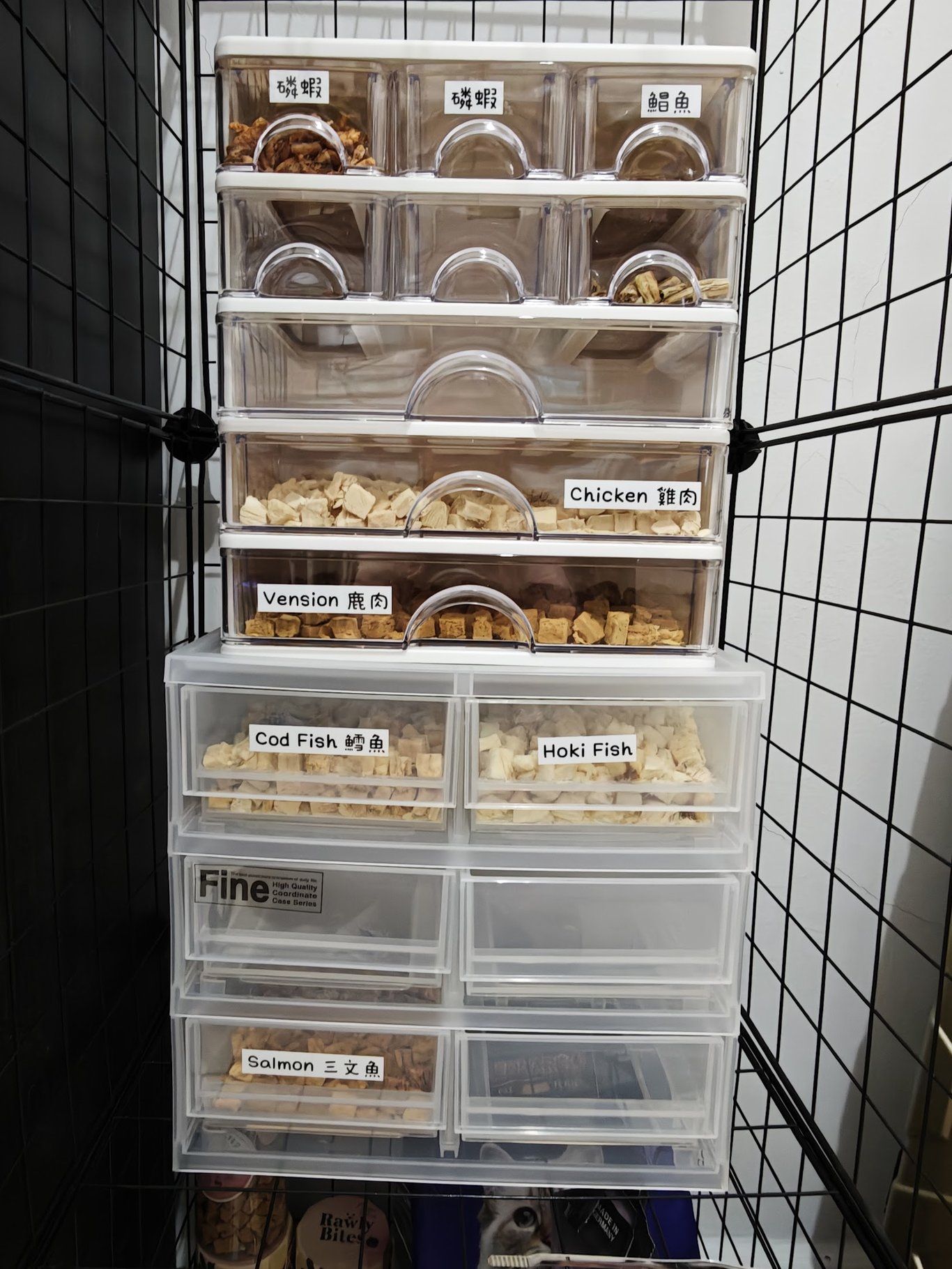 貓貓們越大,已經不吃濕糧做主餐,所以要自己調配凍乾肉來攝取營養,因為有不過蛋白質關係,貓貓們的毛髮反而很滑及很光亮,就算萌萌噠這長毛貓,也完全不打結呢。