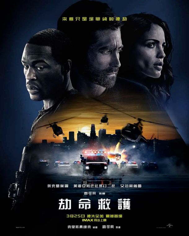 用槍抵住救護員凱蜜(艾莎·岡薩雷 飾演)太陽穴,趕下司機,