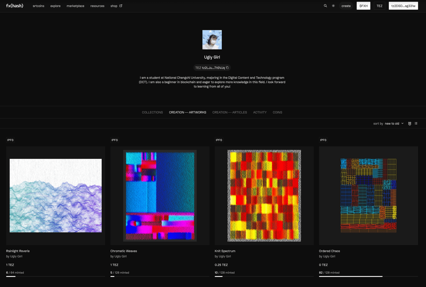 在 fx(hash) 上瀏覽作品時發現區塊分割是創作者們很常用的技法,其中不乏許多有趣的衍生創作,包括上述提及的「Dating an AI」與上課時老師舉例的「台灣建築記憶」都各自在區塊分隔或類似創作技法的基礎上加入獨特的含義。對創作者來說,或許區塊分割不只是形式上的結構設計,更是在每個方格之間的留白、斷裂與重疊,反映他們對於自身與世界的理解及投射。